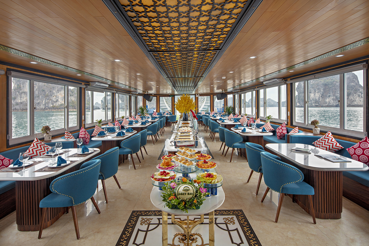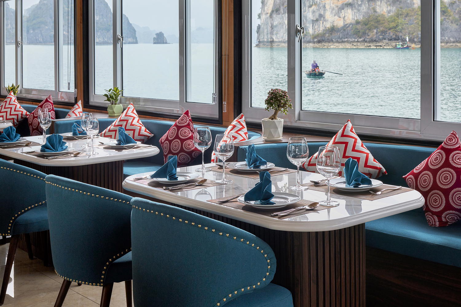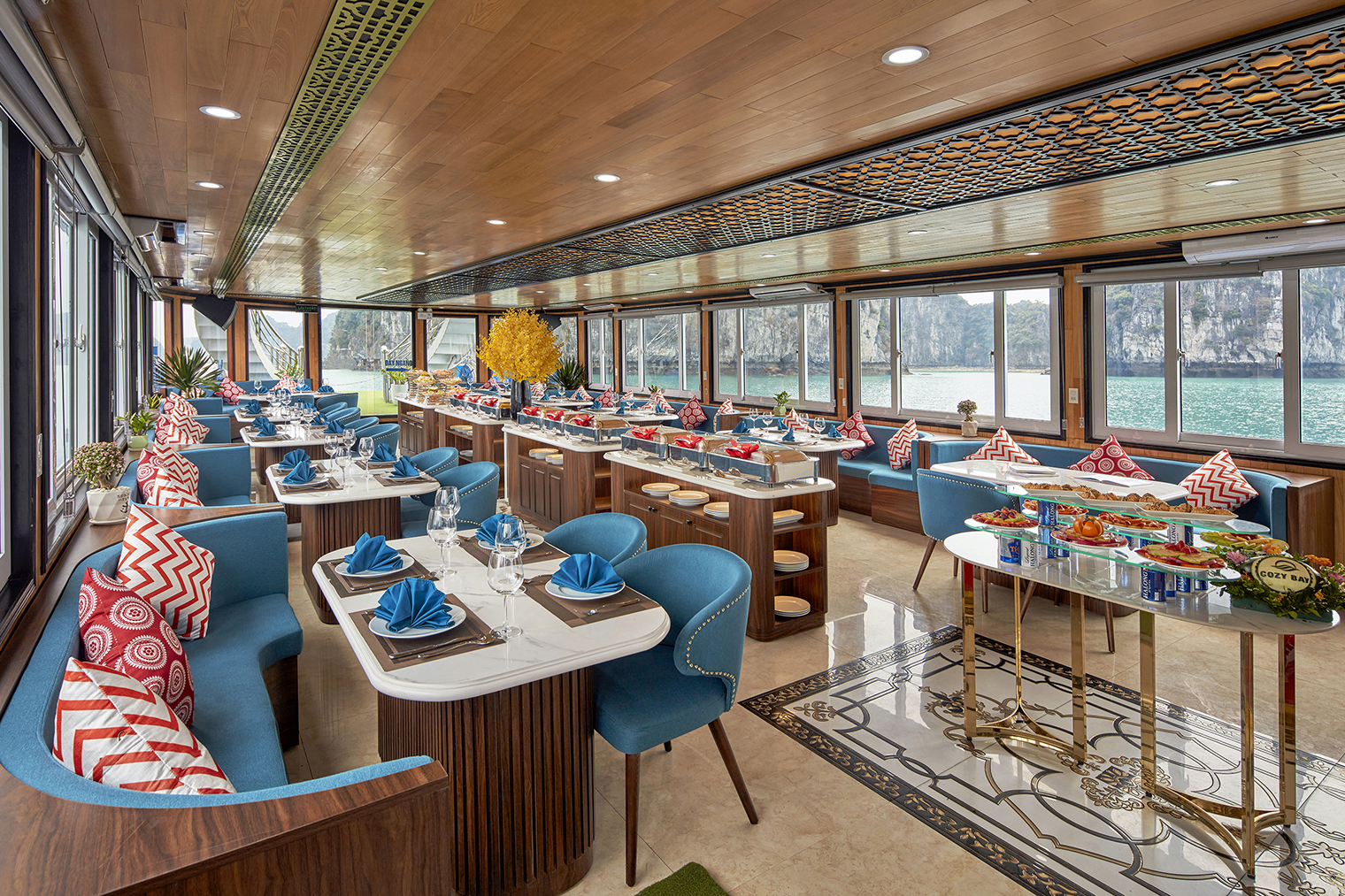 With a square of 70m2 on spacious sundeck for your total relaxtion, you can enjoy sunset party, sunbathing, standing on sundeck to see the beauty of Halong Bay, take a wonderful picture. You will find refreshed by air around you. On the Sundeck, you and nature are one.
