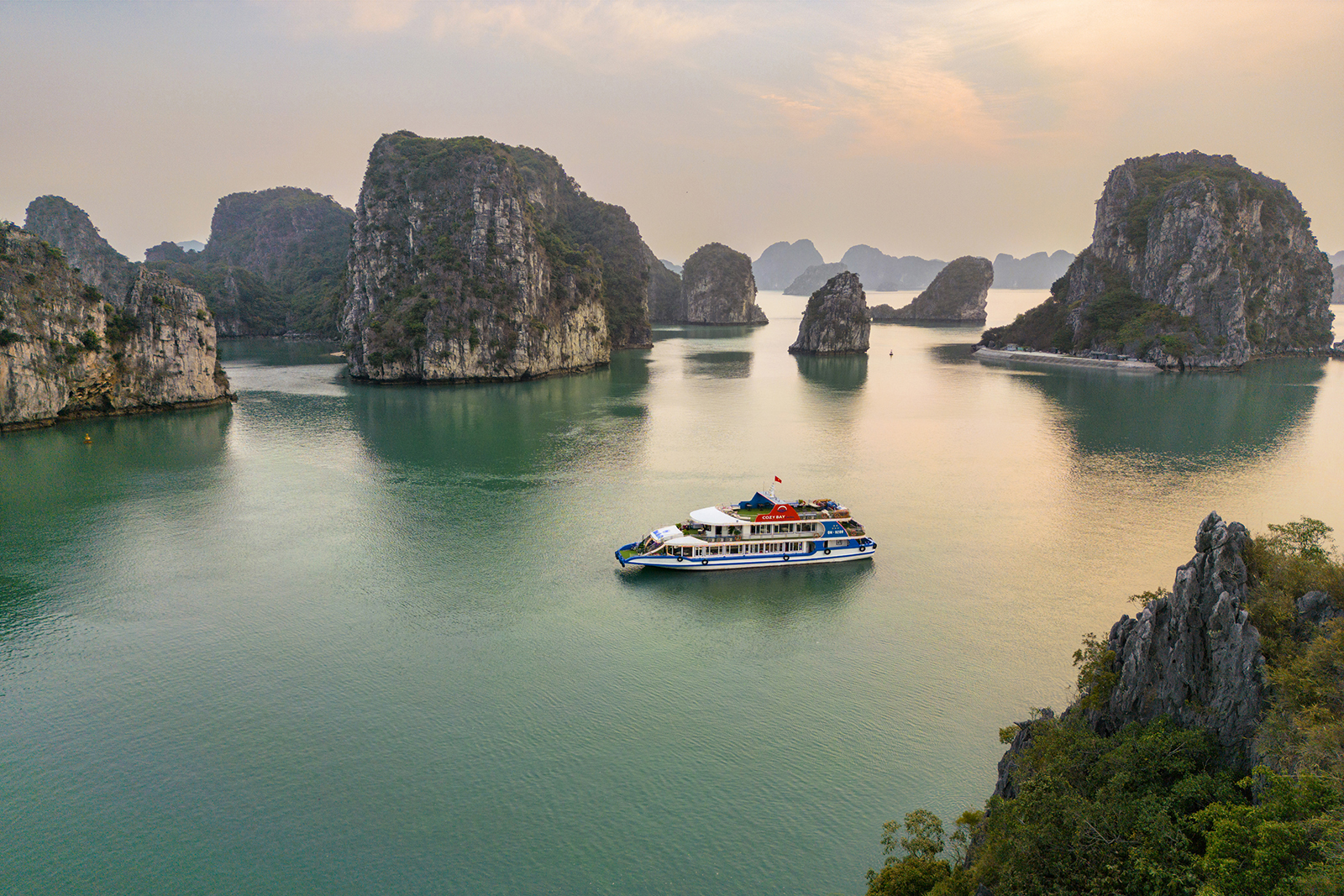18h00 – 18h30: Cruising back to Tuan Chau harbor. There are a lot of time for enjoying sunset party with tea, cakes, sunbathing on upper deck with music and enjoying great fun of group touring fellows among world iconic natural scenery.