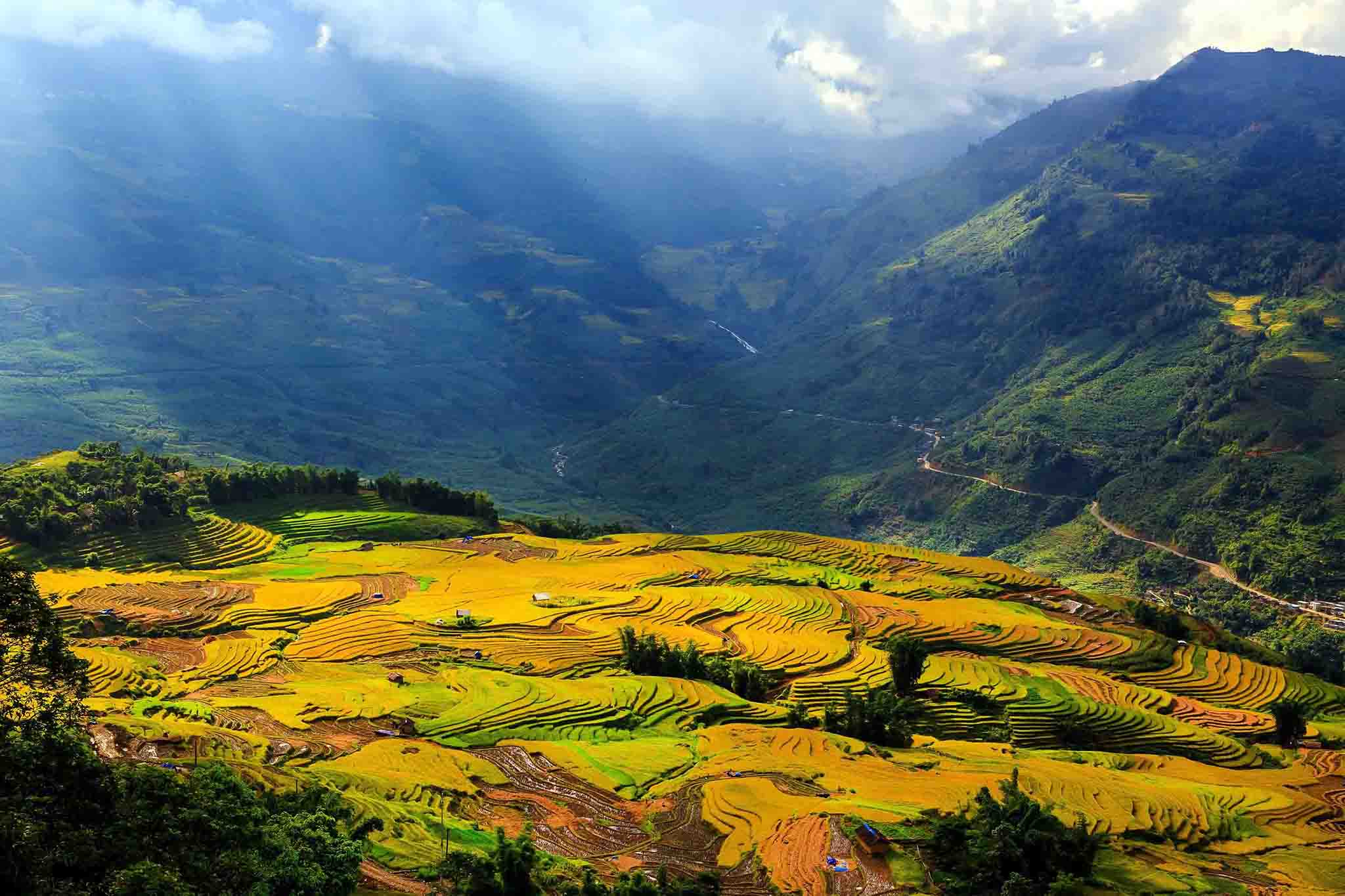 14:15: A short drive to Y Linh Ho then trek through the rice terraces and along Muong Hoa Stream to the Black Hmong village of Lao Chai to see the spectacular landscape of Hoang Lien Son Mountain. You approach Ta Van village where Zay Ethnic People inhabits in the late afternoon.